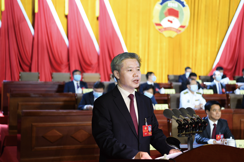 劉文勤作市政協(xié)常委會工作報(bào)告。本網(wǎng)記者陳琦嘉李國強(qiáng)攝