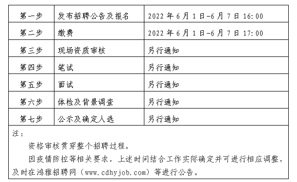 2022年6月1日至2022年6月7日16:00 在鴻雅招聘網(wǎng)(http://www.cdhyjob.com/)、鴻雅微信公眾號(hào)、國(guó)控集團(tuán)官方網(wǎng)站(http://m.jiuchunxiang.com/)及上級(jí)部門要求的相關(guān)網(wǎng)站等發(fā)布招聘公告。