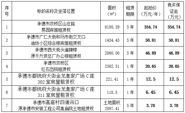 我集團(tuán)全資子公司承德市國(guó)控資產(chǎn)運(yùn)營(yíng)有限公司、承德市國(guó)瑞物業(yè)管理有限公司委托河北福成拍賣有限公司,定于2020年1月21日上午9時(shí)在承德市雙橋區(qū)武烈路6號(hào)紫御國(guó)際假日酒店會(huì)議室公開拍賣下列標(biāo)的,現(xiàn)將有關(guān)事項(xiàng)公告如下:
